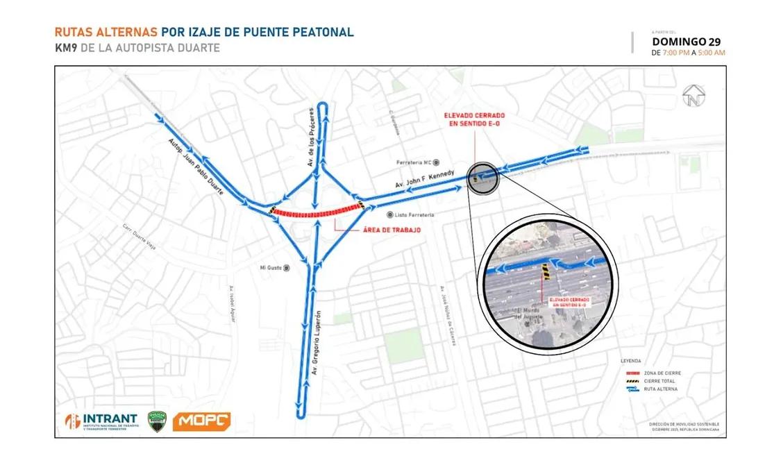Santo Domingo.– Las autoridades informaron sobre el cierre temporal de un tramo en el kilómetro 9 de la Autopista Duarte debido a trabajos de intervención en el puente peatonal de la zona, lo que ha generado cambios en el flujo vehicular en uno de los principales accesos a la capital dominicana. Según el reporte oficial, los conductores que se desplazan en sentido Cibao–Santo Domingo deberán tomar como vía alterna la avenida Luperón, donde podrán realizar un retorno en el semáforo con la calle Olof Palme para reincorporarse a la avenida…