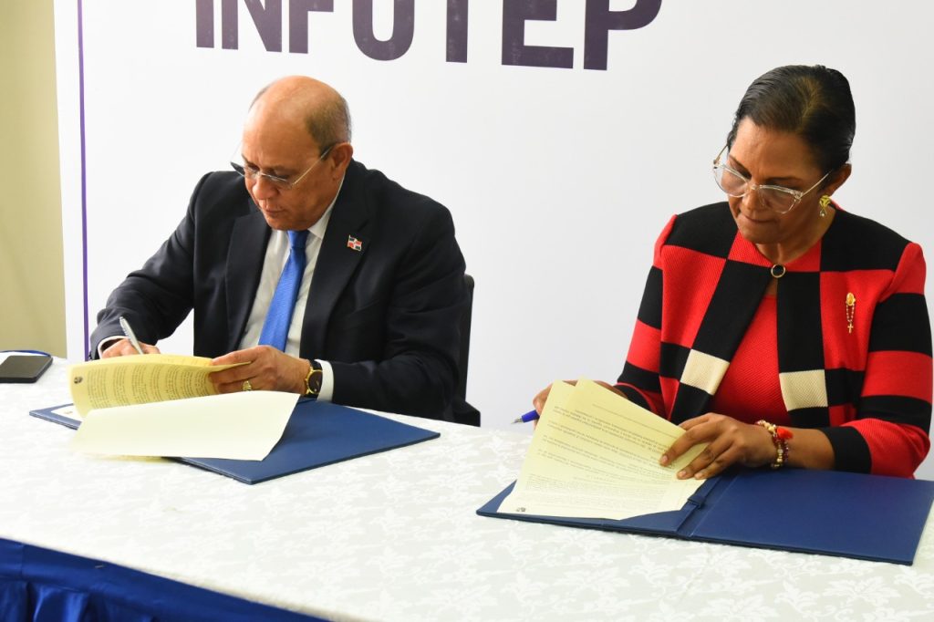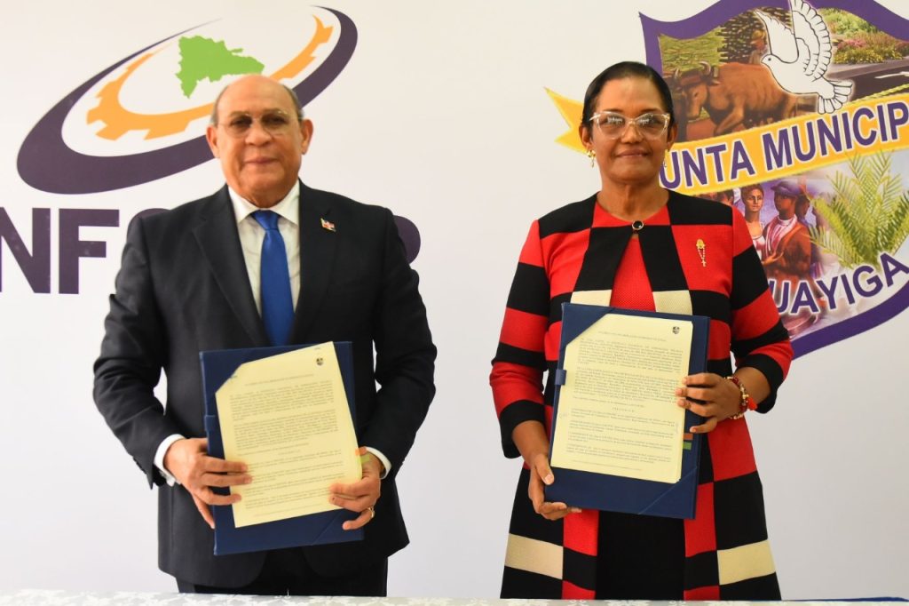 Santo Domingo, -El Instituto Nacional de Formación Técnico Profesional (INFOTEP) y la Junta del Distrito Municipal de la Guáyiga, firmaron un acuerdo de colaboración interinstitucional que beneficiará a los más de 23 mil habitantes de la comunidad, con acciones formativas y capacitaciones.