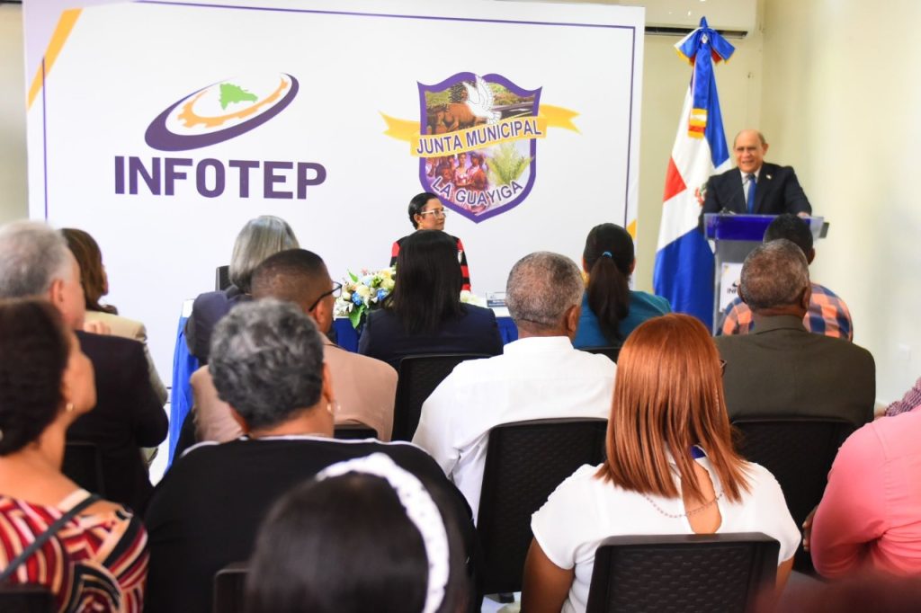 “Como órgano rector de la formación técnico profesional, cónsono con los lineamientos y directrices del Gobierno Central, continuamos sentando las bases para forjar proyectos que garanticen una formación inclusiva, equitativa y de calidad, promoviendo el aprendizaje permanente en los adultos y jóvenes, y en esta ocasión a favor de los munícipes del Distrito Municipal La Guáyiga, y zonas aledañas”, manifestó Santos Badía.