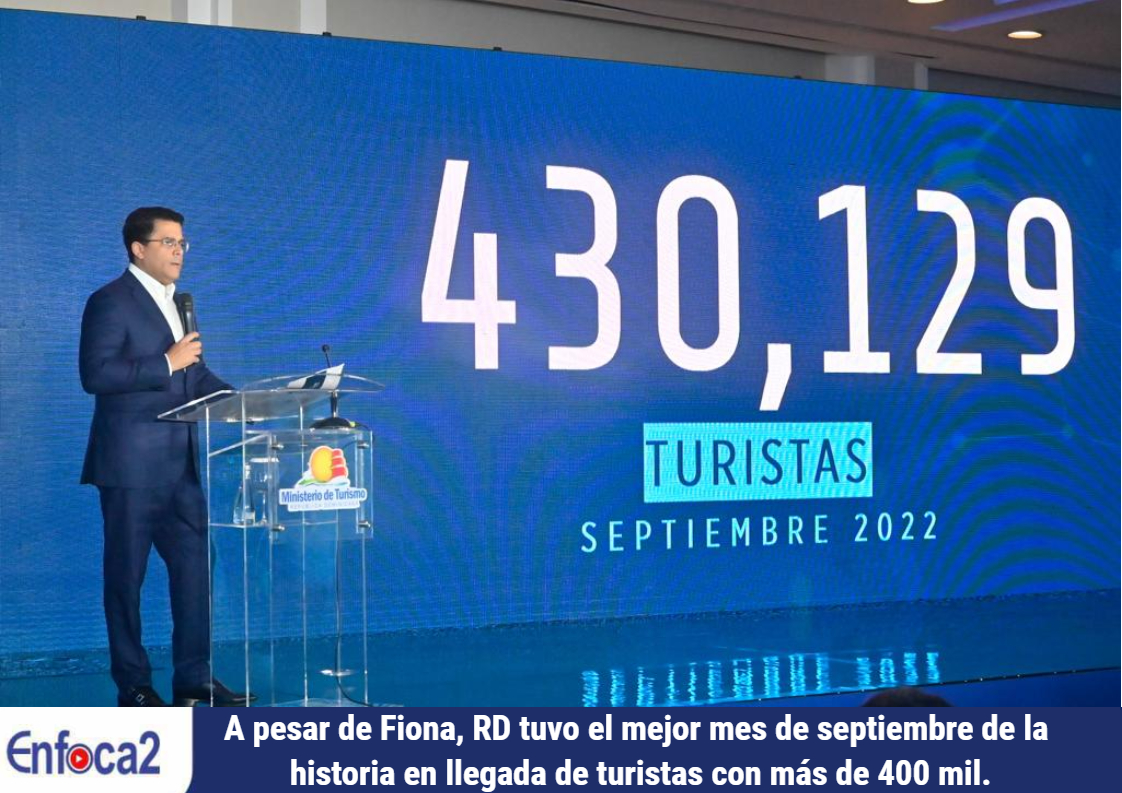 SANTO DOMINGO. – Pese a los efectos de la tormenta Fiona, el turismo dominicano volvió a alcanzar números récord, con la llegada de 439,129 turistas en septiembre, 106,467 más que en el mismo mes del 2019.