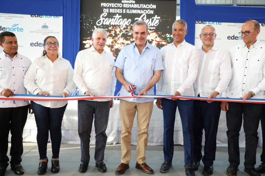 En horas de la tarde, el presidente Abinader inauguró varias obras eléctricas desarrolladas por Edenorte Dominicana S.A con una inversión de RD$66 millones, que van desde rehabilitación, readecuación e iluminación y beneficiarán a 1,580 familias residentes en San Miguel I y II, Villa Hermosa, Los Solares, La Bendición Arriba, La Bendición Abajo, entre otras.