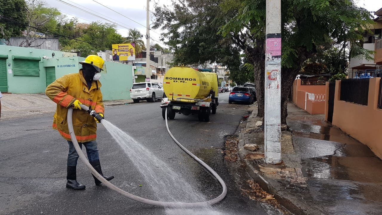 Santo Domingo DN, RD.- La Alcaldia de la capital realizó la tarde de hoy un operativo de limpieza junto al Cuerpo de Bomberos del Distrito Nacional, y un equipo de fumigación en el sector del Ensanche La Paz.