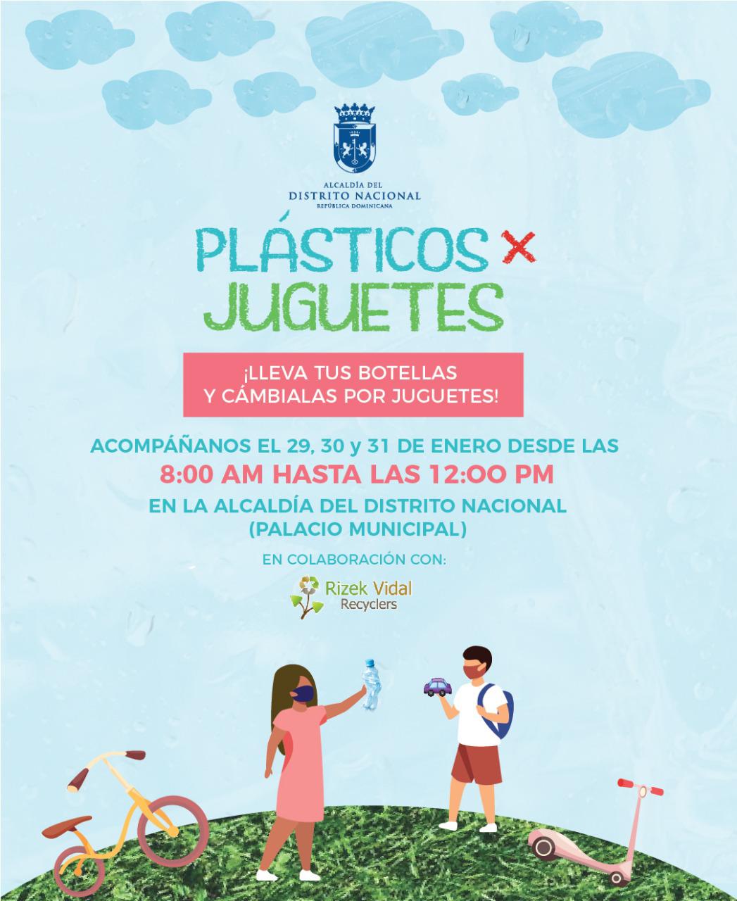 Santo Domingo, D.N. La alcaldía del Distrito Nacional efectuará desde sábado 29 al domingo 31 próximo el intercambio de plásticos por juguetes, que había programado para las festividades del Día de los Santos Reyes, y que fue pospuesto por las medidas sanitarias dispuestas por el Gobierno central.