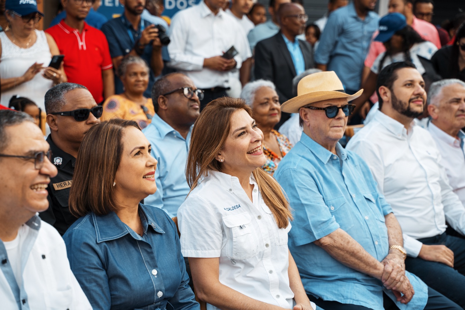 Durante el acto, la alcaldesa Carolina Mejía recibió las llaves del sector y fue reconocida como hija adoptiva por parte del cogestor Lenin Paulino y la niña María Beatriz, en representación de la comunidad de Mata Hambre.