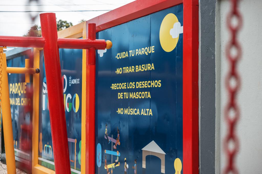 La intervención realizada por ADN en el Parque Loma del Chivo abarca limpieza general del parque y zonas aledañas, pintura del espacio y de las fachadas de las viviendas alrededor; remozamiento de toda el área infantil incluyendo graba decorativa. También fue realizado el resane de contenes y aceras, arreglo de bancos, iluminación del parque y la glorieta; colocación de juegos variados, zafacones, y letrero de identidad del parque, al igual que señaléticas sobre el buen uso del espacio.