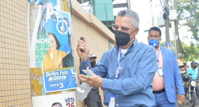 Santo Domingo Este, RD.- El alcalde del municipio de Santo Domingo Este (SDE), Manuel Jiménez, encabezó la mañana de este jueves una jornada de desmonte de la propaganda política de todos los candidatos y partidos que compitieron en las pasadas elecciones, como una forma de eliminar la contaminación visual que genera este tipo de publicidad exterior.