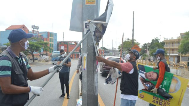 Jiménez aseguró que en una semana recuperarán el municipio conformado por tres circunscripciones de la contaminación visual que se encuentra, y llamó a la ciudadanía abstenerse de colocar afiches, bajantes, cruza calles y vallas en las vías públicas, pues está ya prohibido.