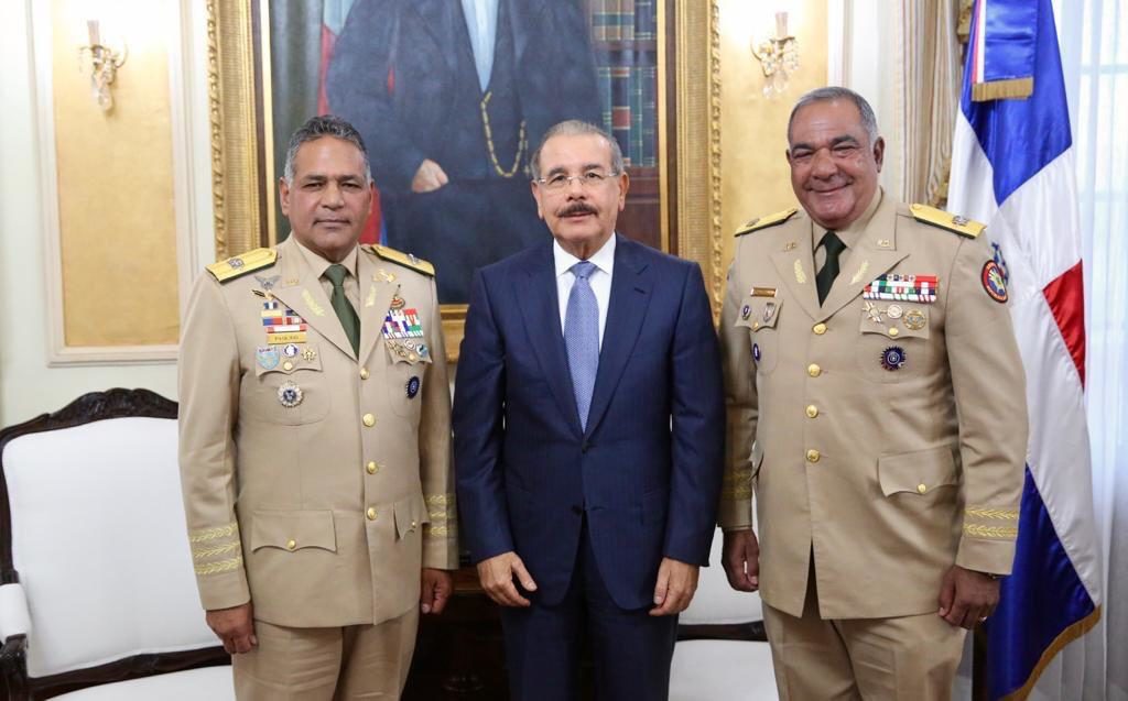 El presidente Danilo Medina recibió en su despacho del Palacio Nacional a los miembros del alto mando militar encabezados por el teniente general Rubén Darío Paulino Sem, ministro de Defensa.