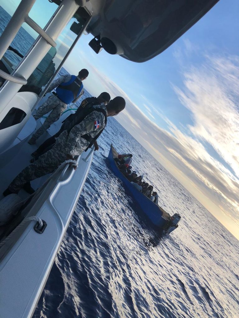 SANTO DOMINGO, RD.- La Armada de República Dominicana en Operación Conjunta con el servicio de Guardacostas de EE.UU., interceptaron, a unas 15 millas al Suroeste de la Isla Mona, una embarcación clandestina de aproximadamente (30) pies, llevando a bordo (23) personas, (21) hombres y (02) mujeres, incluyendo (07) nacionales haitianos, quienes pretendían llegar de manera ilegal a la vecina isla de Puerto Rico.