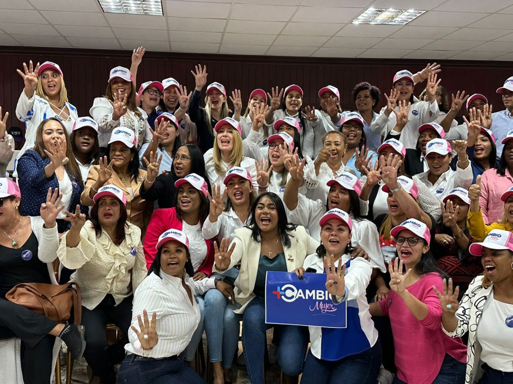 La diputada Leyvi Bautista secretaria general a nivel nacional del Frente de Mujeres del Movimiento Más Cambio encabezó un encuentro-asamblea donde se definieron las estrategias y planes en respaldo a la reelección del presidente Luis Abinader.