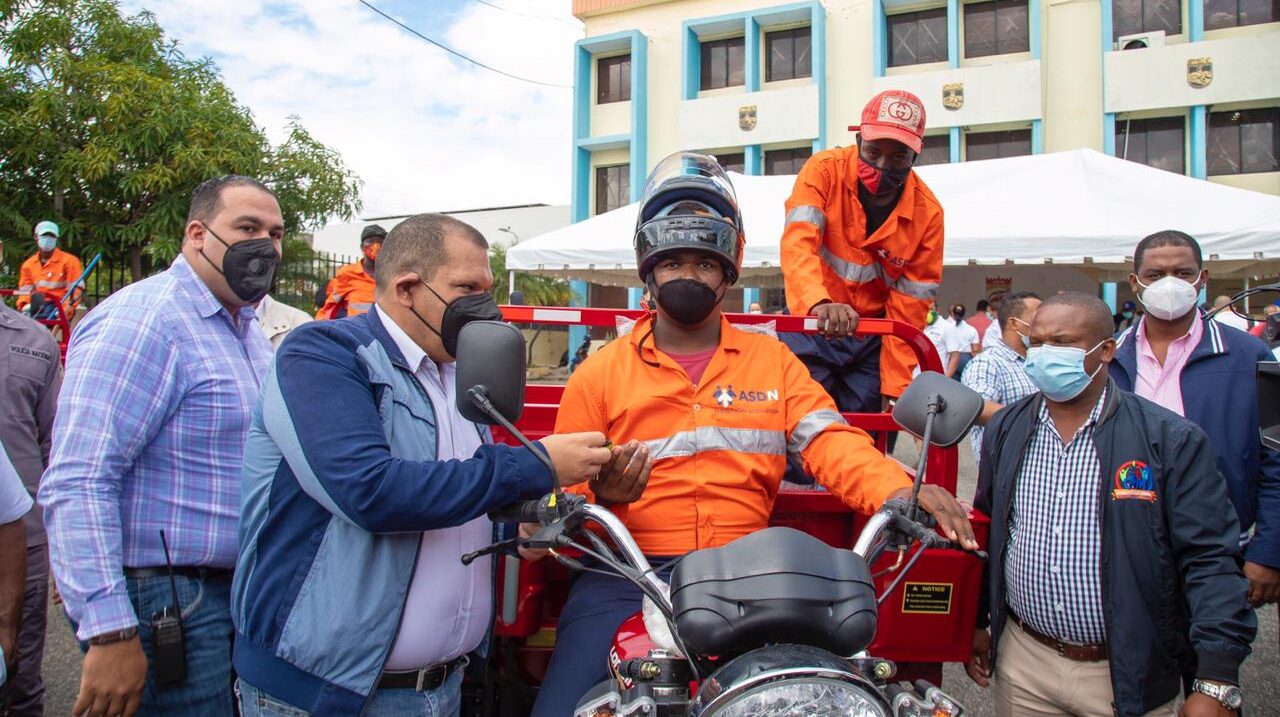 Santo Domingo. -La Alcaldía de Santo Domingo Norte, inició un novedoso programa para la recolección de desechos sólidos, denominado Moto Basura, que utilizará motocicletas de tres ruedas con un sistema de volteo del contenedor que sube e inclina hacia atrás y puede vaciar por completo.