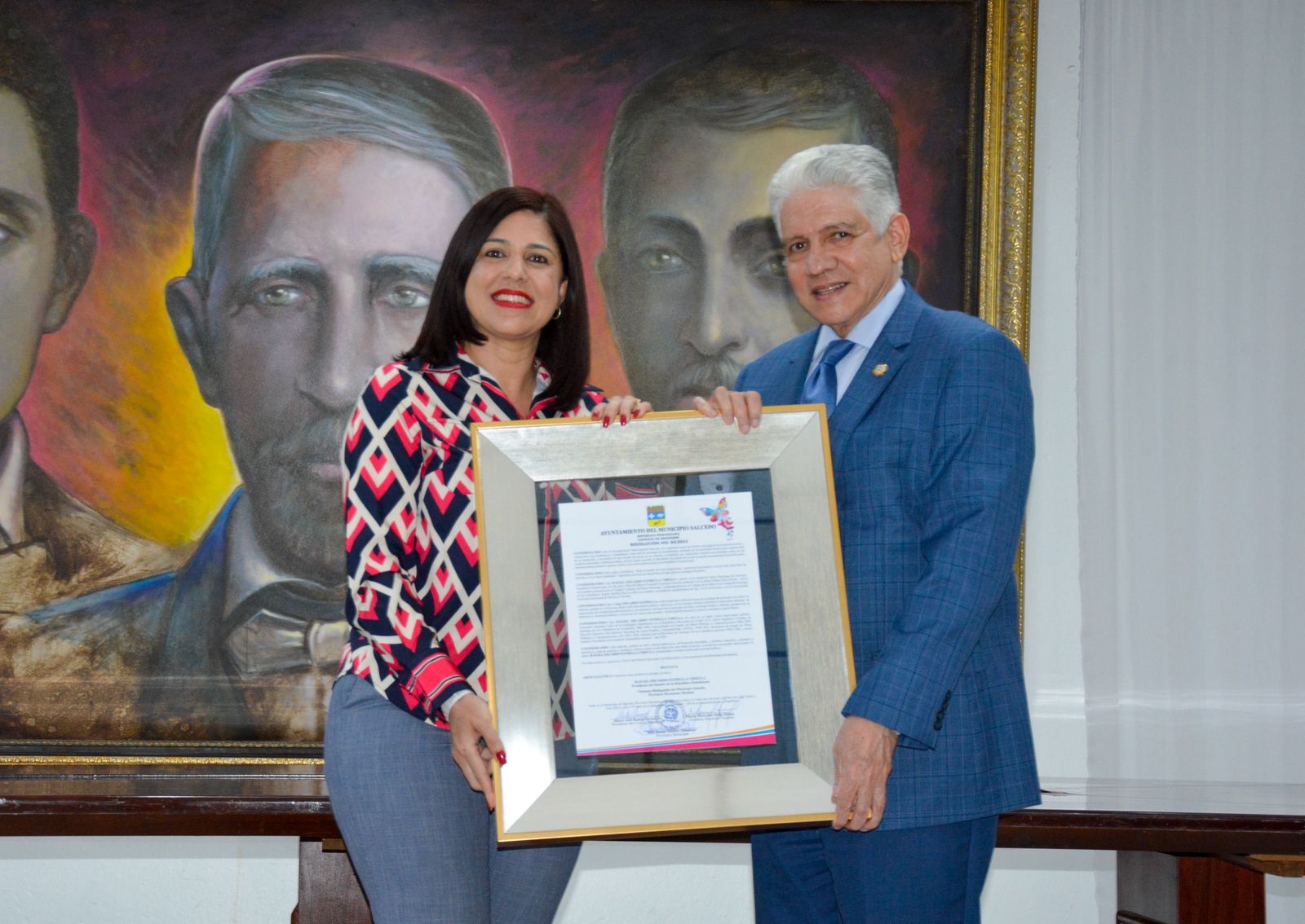 Salcedo. Hermanas Mirabal. R.D. 10 DE marzo de 2023.- El Ayuntamiento del Municipio de Salcedo declaró al presidente del Senado de la República, Eduardo Estrella, como Visitante Distinguido, con la entrega de un reconocimiento por su honrosa hoja de servicio público a favor de la nación.