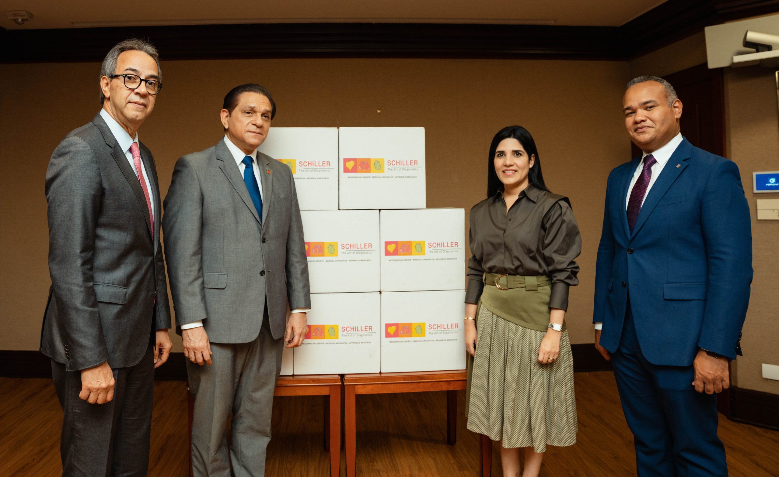 Santo Domingo, D.N. – El Banco Popular Dominicano entregó al ministro de Salud Pública y Asistencia Social, doctor Daniel Rivera Reyes, ocho electrocardiógrafos que se utilizarán en el proyecto de salud preventiva “Ruta de la Salud: cambia tu estilo de vida”, un amplio programa de intervenciones que el Ministerio de Salud Pública desarrolla en todo el país y que dejará instalados diversos puntos cardiometabólicos para dar seguimiento a la población.