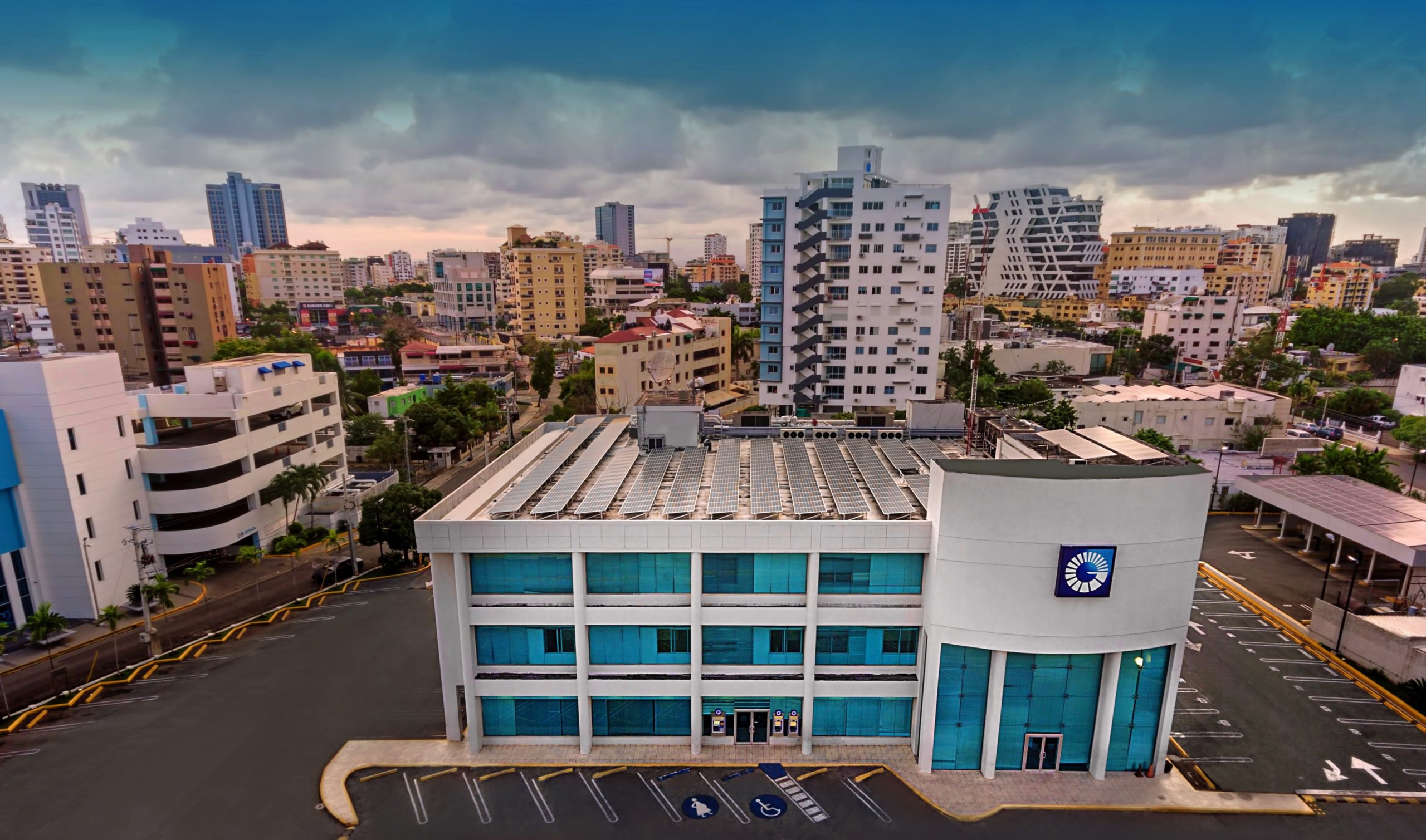 La sucursal ubicada en la localidad de Juan Dolio, provincia San Pedro de Macorís, fue la primera en integrar esta red de oficinas solares hace una década. El proyecto ha ido creciendo en cantidad de oficinas y en alcance, ya que su desarrollo ha implicado la creación de un completo centro de gestión y eficiencia energética, localizado en la Torre Popular, que monitorea la producción de los paneles, que operan en la modalidad bidireccional, lo que significa que el banco consume una parte de su producción de energía limpia e inyecta al sistema eléctrico interconectado la que no consume, además de medir también la eficiencia de sus equipos electromecánicos, auditando la factura eléctrica y las emisiones a la atmósfera en tiempo real.