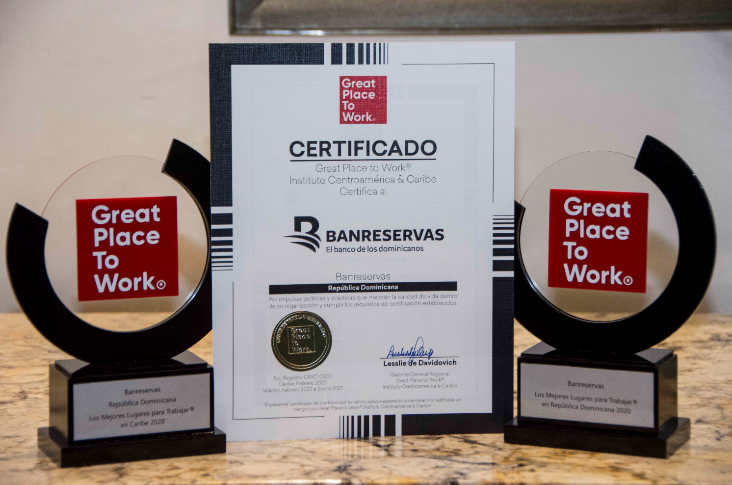 SANTO DOMINGO, RD.- El Banco de Reservas recibió la certificación Great Place to Work 2019, que otorga la firma global de investigación, capacitación y consultoría para Centroamérica y Caribe, que permite a la institución financiera ingresar al ranking de Los Mejores Lugares para Trabajar, tanto en el país como en la región.