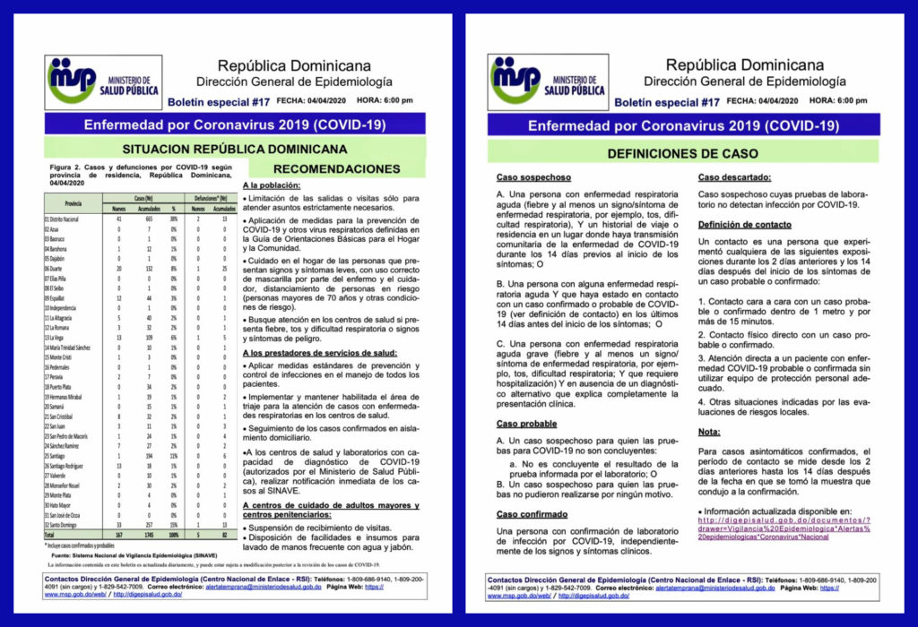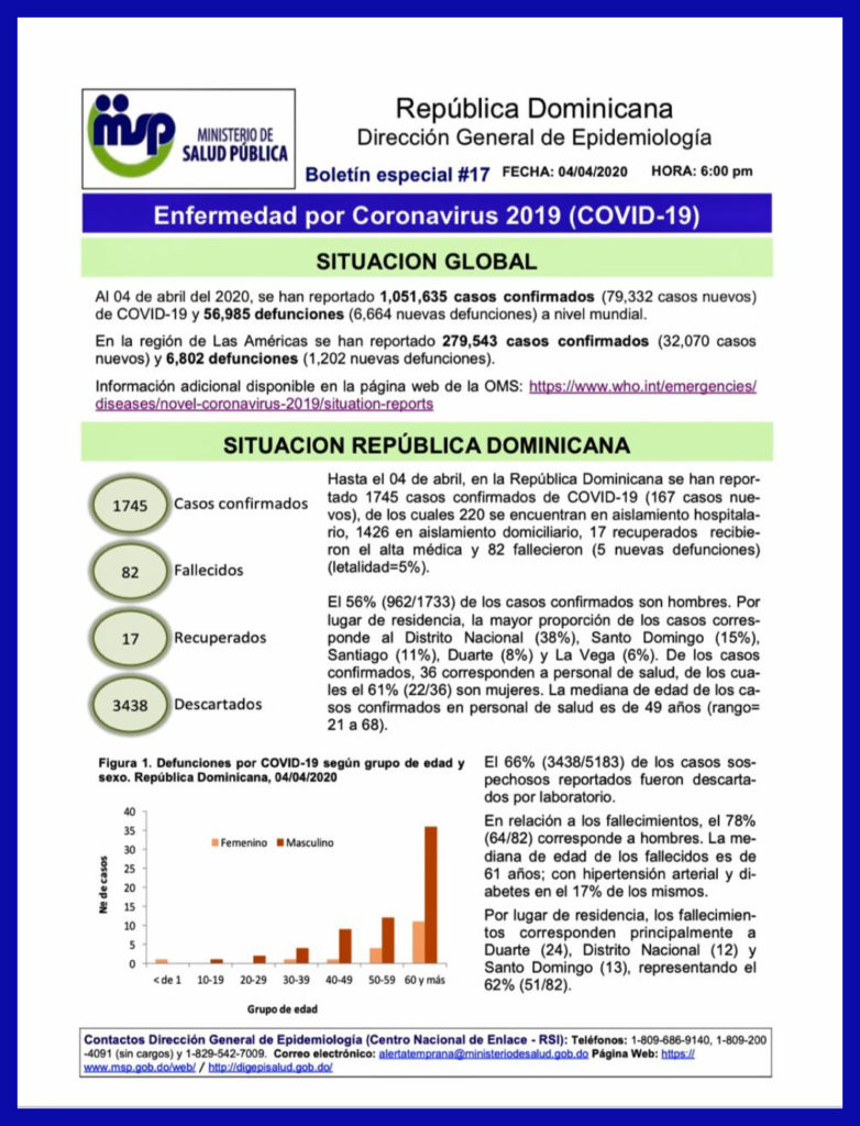 Situación RD, 4/4/2020 18:00 •Casos confirmados: 1,745