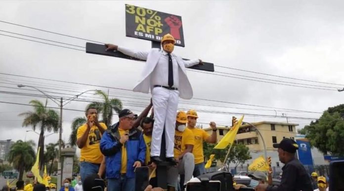 SANTO DOMINGO.-Decenas de personas se concentraron en la explanada del Congreso Nacional en la mañana de este lunes 16 de agosto, para exigir sea aprobada la iniciativa de Ley que busca devolver el 30% de los fondos de pensiones a los trabajadores que fueron afectados económicamente por la pandemia de la Covid-19.
