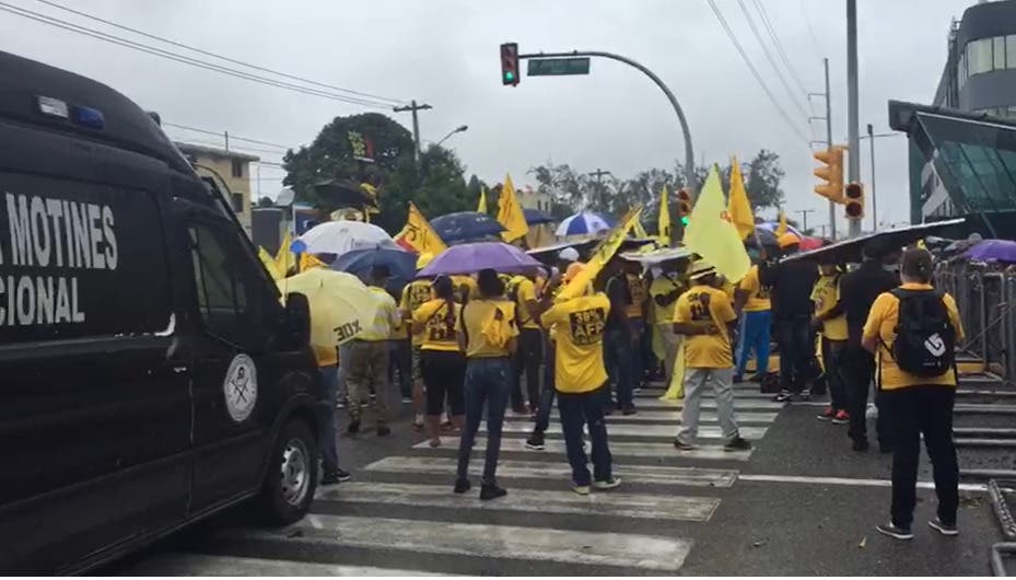 Grupo de manifestantes que apoyan la propuesta del diputado Pedro Botello de que les sean devueltos a los ahorristas el 30% de los fondos acumulados.
