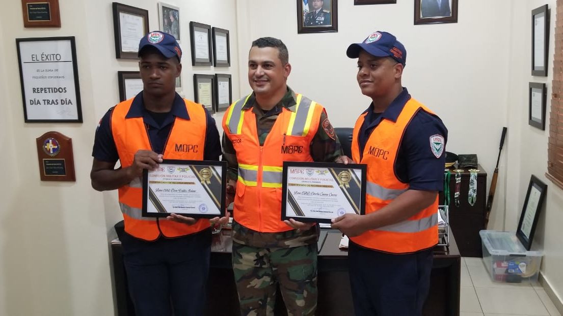 SANT ODOMINGO, RD.- El Ministerio de Obras Públicas y Comunicaciones (MOPC) a través de la Comisión Militar y Policial reconoció hoy a los dos rasos que rescataron a un bebé que fue dejado abandonado en la Prolongación 27 de Febrero, ensanche Altagracia, Santo Domingo Oeste. Los rasos Elson Valdez Solano, ERD y Esterlin Cuevas Cuevas, ERD, del Ejército de la Republica Dominicana pertenecientes a la Gestión Operativa de Asistencia y Control de Tráfico (COMIPOL) les fueron entregados un certificados de reconocimiento por teniente coronel Douglas Borrell, ERD., director de la…