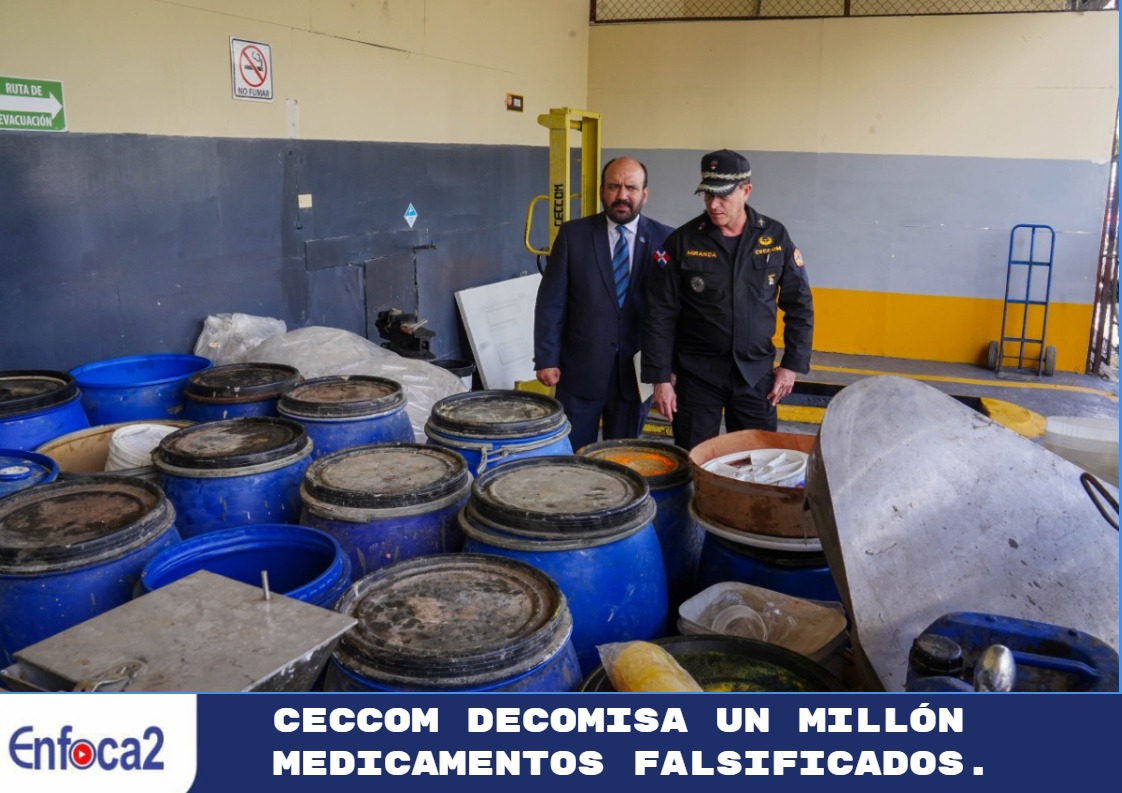 SANTO DOMINGO. – El Cuerpo Especializado de Control de Combustibles y Comercio de Mercancías (CECCOM), junto a otras autoridades, decomisaron alrededor de un millón de pastillas para la presión y de analgésicos falsificados, que eran empacados en cajas con logos y distintivos de empresas farmacéuticas nacionales y extranjeras reconocidas.