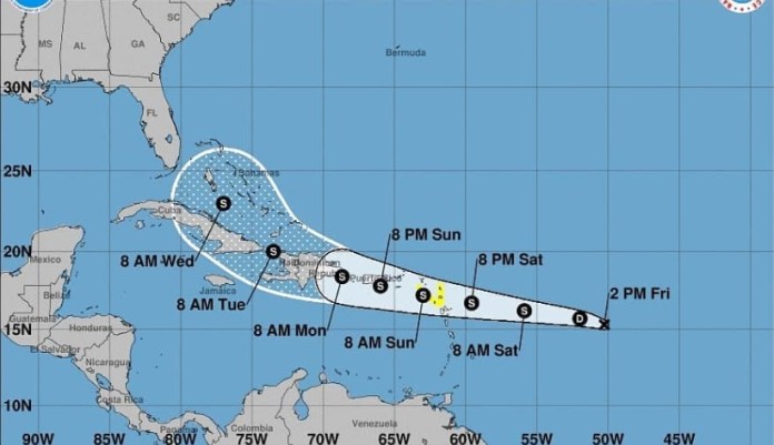 El COE sostiene que el centro del posible ciclón tropical número siete se ubica a 1,220 kilómetros al este de las islas de sotavento.