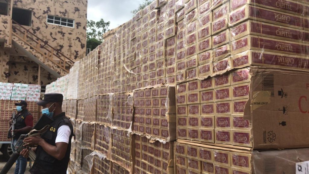 El Cuerpo Especializado en Seguridad Fronteriza Terrestre ( Cesfront), por disposición del Tte Gral Carlos Luciano Diaz Morfa, ERD, Ministro de Defensa, hizo entrega a la Dirección General de Aduanas de la cantidad de 3,010,000 unidades de cigarrillos de diferentes marcas, los cuales fueron incautados por ese organismo en los últimos días cuando estaban siendo introducidos de contrabando desde el vecino país de Haití.