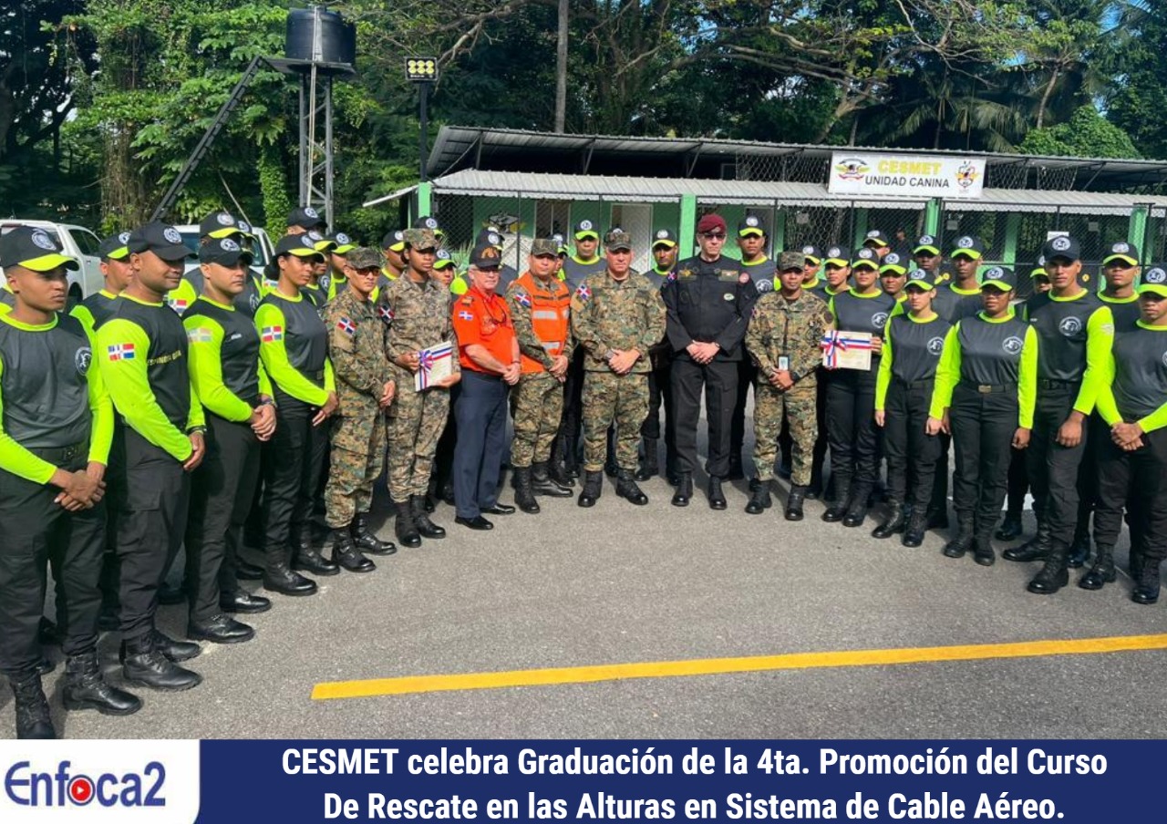 El Cuerpo Especializado para la Seguridad del Metro y Teleférico de Santo Domingo (CESMET), a través de su Escuela de Seguridad, realizó el acto de graduación de la 4ta. Promoción del Curso de ¨Rescate en las Alturas en Sistema de Cable Aéreo¨.