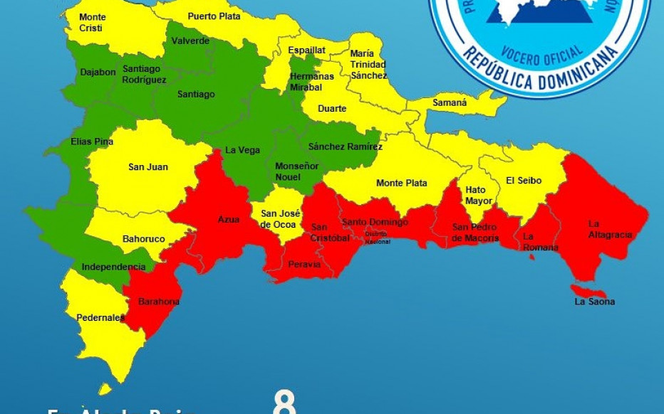 Casi toda la costa caribeña del país, incluyendo Santo Domingo, están en alerta roja y la costa norte se encuentra en alerta amarilla (intermedia), mientras que la cordillera central y la zona fronteriza está en alerta verde (baja).