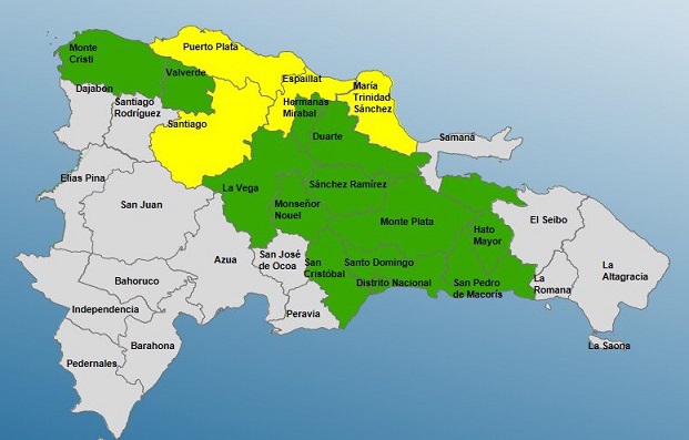Las provincias en Alerta Amarilla son Puerto Plata, Santiago, Espaillat y María Trinidad Sánchez.