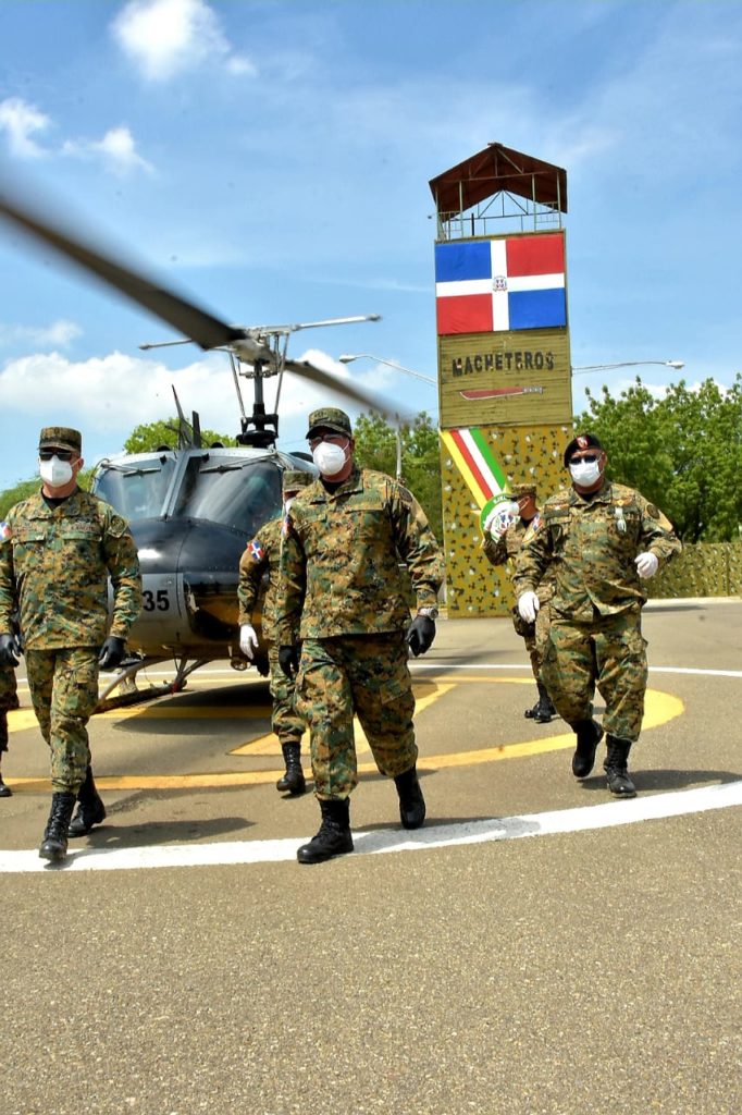 El comandante General del Ejercito aprovechó su visita a la frontera como es de costumbre para agradecer a los soldados por su brillante desempeño en la pandemia del Coronavirus, tanto en la seguridad fronteriza, ciudadana y por el apoyo dado a las autoridades de salud en la lucha para detener la propagación del COVID-19, en lugar le fue entregado también mascarillas a los comunitarios, luego el alto mando continuó con un recorrido por el Interagencial de Estero Hondo y otros destacamentos militares, terminando su periplo en la sede de la 4ta. Brigada de Infanterí en Mao, donde entregó logística de chamaco y alimentos a todo el personal. En la inauguración y el recorrido estuvieron presentes el Director de Inteligencia General de Brigada Alexis R. Santana Almonte, el Comandante de la 4ta. Brigada de Infantería, General de Brigada Ramón E. Jiménez Peña, autoridades civiles y militares de la zona, así como otros miembros de su Estado Mayor Coordinado y Estado Mayor Especial.