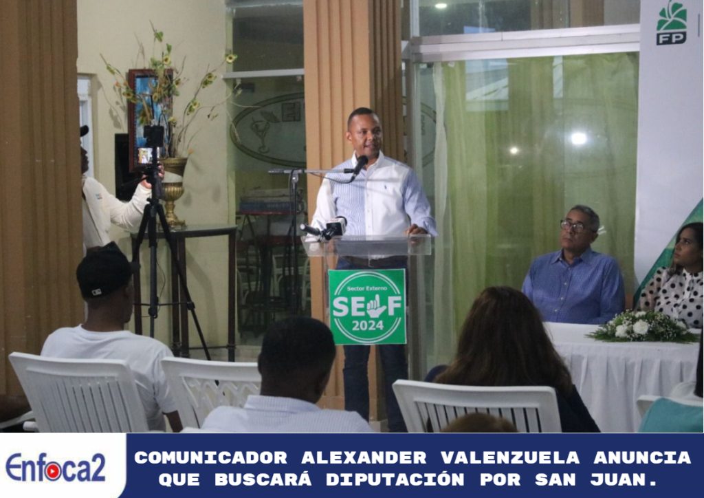 San Juan, Rep Dom.– Con el lema “juntos somos más fuertes”, el comunicador dirigente de la Fuerza del Pueblo, Alexander Valenzuela, anunció este fin de semana en un acto organizado en el municipio Las Matas Farfán, que ha decido buscar una diputación por San Juan.