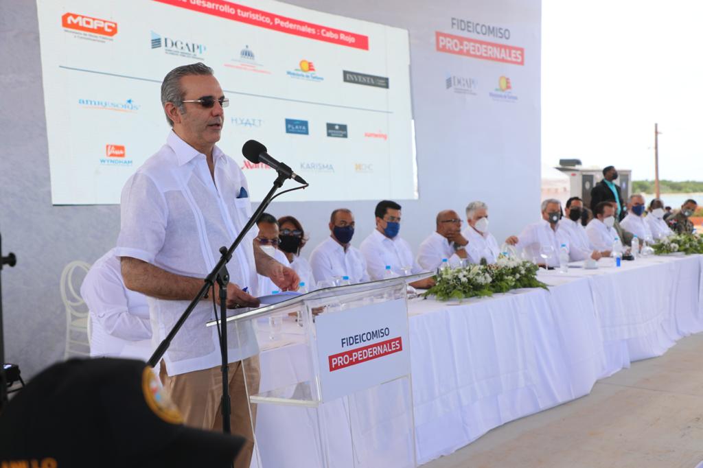 “Espero poder ver, antes del 2024, la apertura de uno de esos hoteles y la cara sonriente de esos jóvenes trabajando, verlos complacidos de que ya tienen un futuro en su propia tierra, o un taxista transportando a un turista a Pedernales”, precisó el Presidente Abinader.