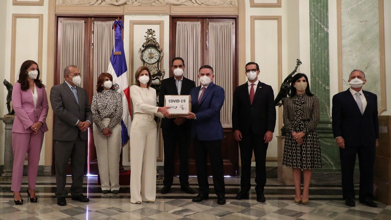 SANTO DOMINGO, R.D.-El Gabinete de Salud, encabezado por la Vicepresidenta de la República, Raquel Peña recibió insumos de protección sanitarios de parte  del Consejo Nacional de la Empresa Privada (CONEP), a través de la alianza empresarial Sanar una Nación, como un aporte para la mitigación, prevención y contención del Covid-19 en República Dominicana.