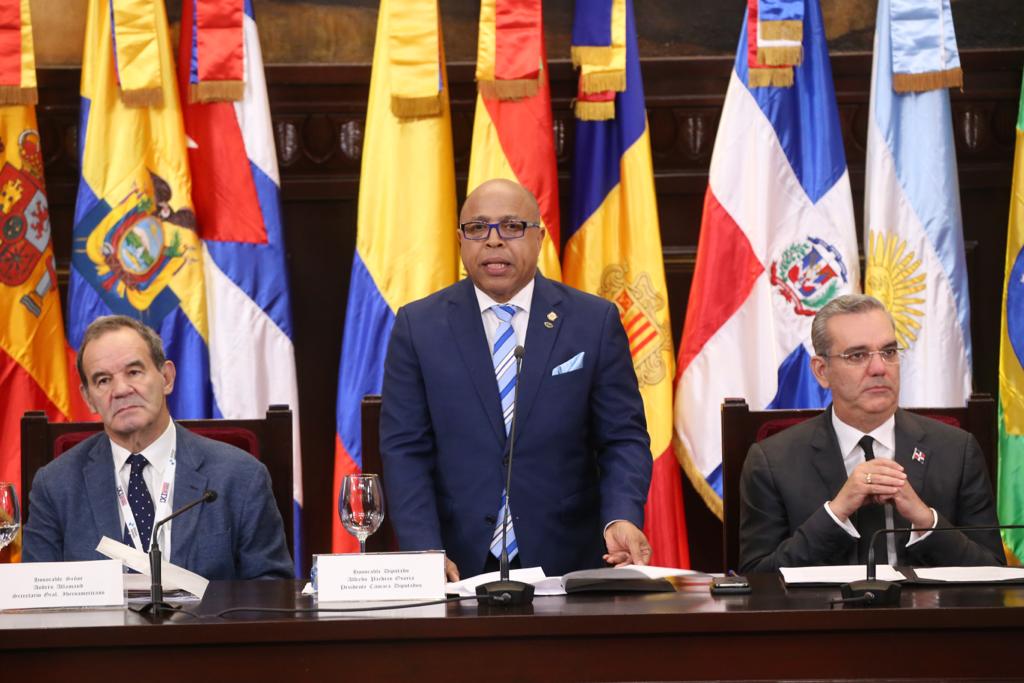 El acto de apertura, que se desarrolló en el Salón de la Asamblea Nacional, estuvo encabezado por el presidente Luis Abinader; presidente del Senado de la República, Eduardo Estrella; presidente de la Cámara de Diputados, Alfredo Pacheco; y el secretario general iberoamericano, Andrés Allamand.