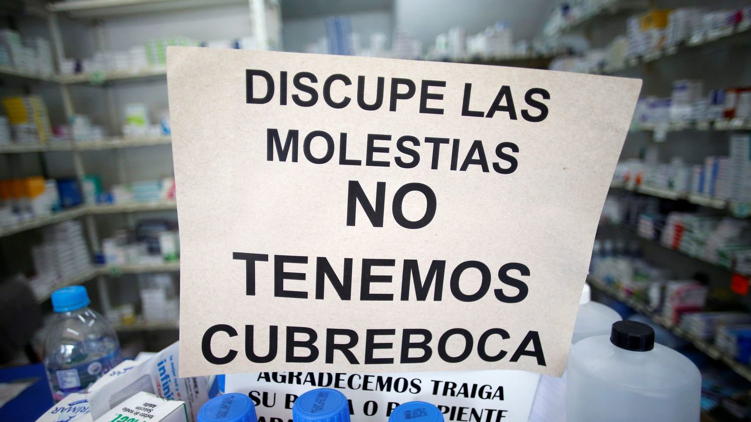 Cartel en una farmacia de la Ciudad de México, A pesar de que los afectados no llegan a una decena, se han provocado compras de pánico en México o una repatriación masiva de colombianos