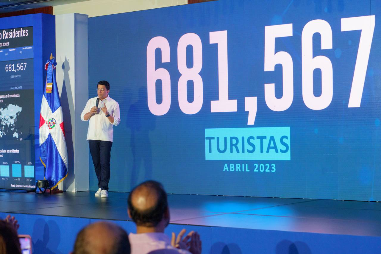 que en el 2022 y 17 % que el año 2019. Explicó que de los 681,567 turistas que visitaron el país en abril, 587,455 eran extranjeros y 94,112 dominicanos.