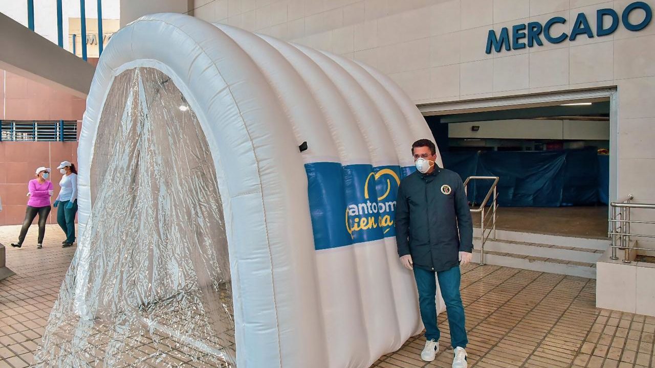 Collado anunció que este es el primero de 10 túneles que se instalarán en diferentes mercados y puntos de gran afluencia de personas en la capital como medida para contrarrestar la propagación del COVID 19 en la ciudad.