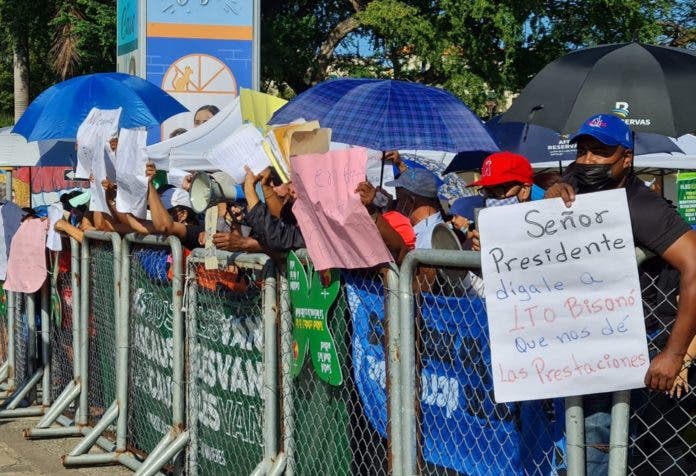 Un grupo de exempleados del Ministerio de Industria y Comercio protestó hoy frente al Palacio Nacional en reclamos del pago de sus prestaciones laborales.