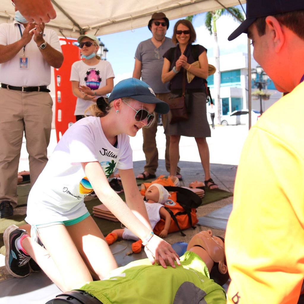 19 de marzo de 2022, Puerto Plata.- Con la finalidad de sensibilizar a la ciudadanía sobre la importancia de aprender primeros auxilios básicos, para responder a tiempo ante una emergencia que ponga en peligro la vida de las personas durante la Semana Santa, la Defensa Civil lanzó este sábado la campaña de prevención “Aprendiendo a Salvar Vidas”.