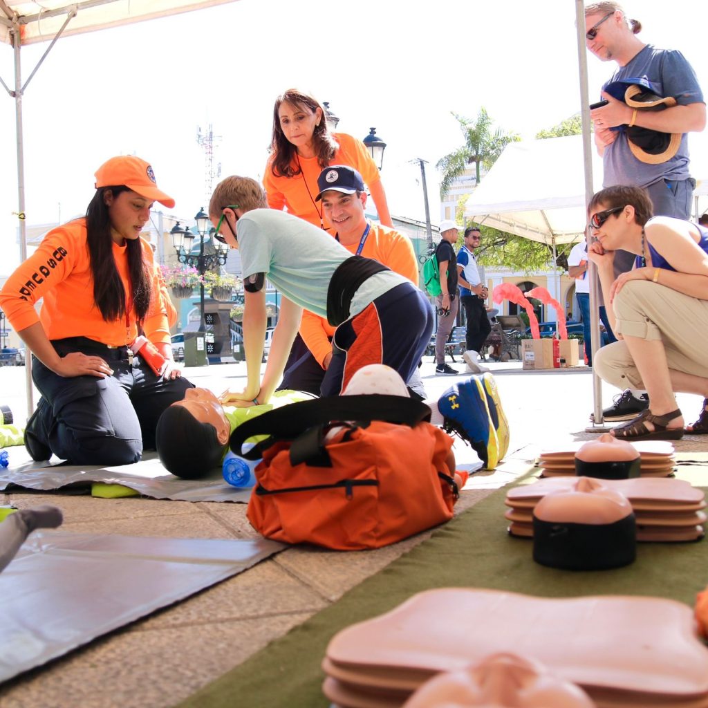 Se trata de una iniciativa que busca llevar jornadas de capacitación a plazas comerciales, parques, universidades y otros lugares concurridos, para enseñar a la población, con ejercicios prácticos y breves, maniobras para aplicar reanimación cardiopulmonar (RCP), atender a una persona atragantada o herida, y cómo controlar un conato de incendio.