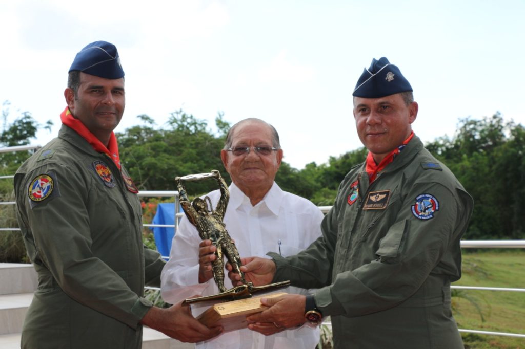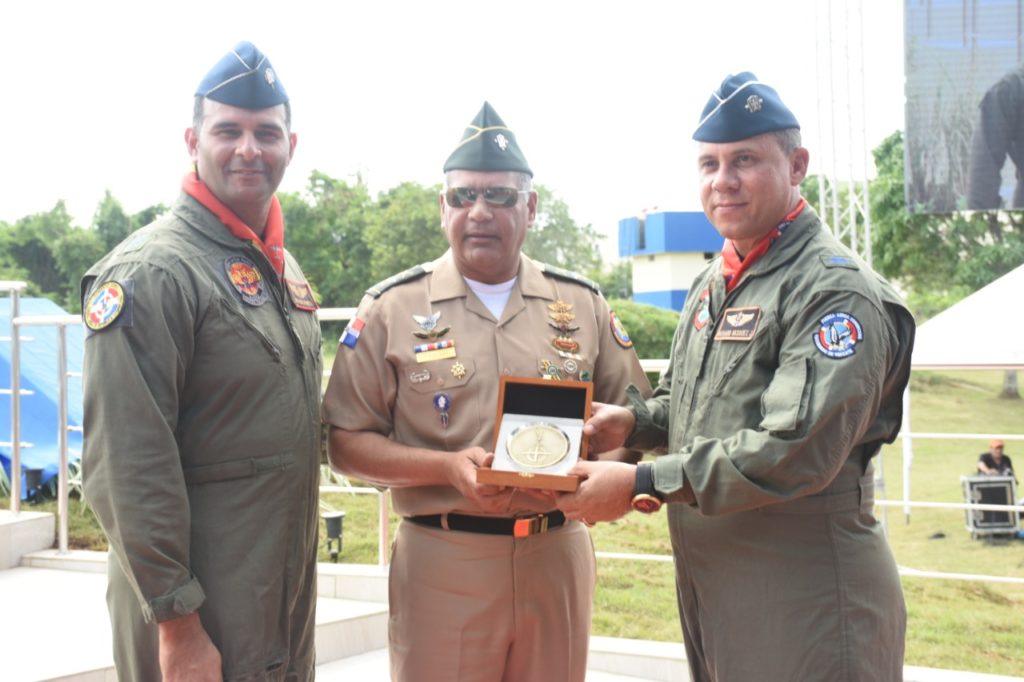 Mientras una representación de aviadores de los diferentes escuadrones de vuelo entregó el águila, símbolo de los cielos soberanos, en reconocimiento al Comandante General de la FARD, Mayor General Piloto Richard Vásquez Jiménez,FARD.