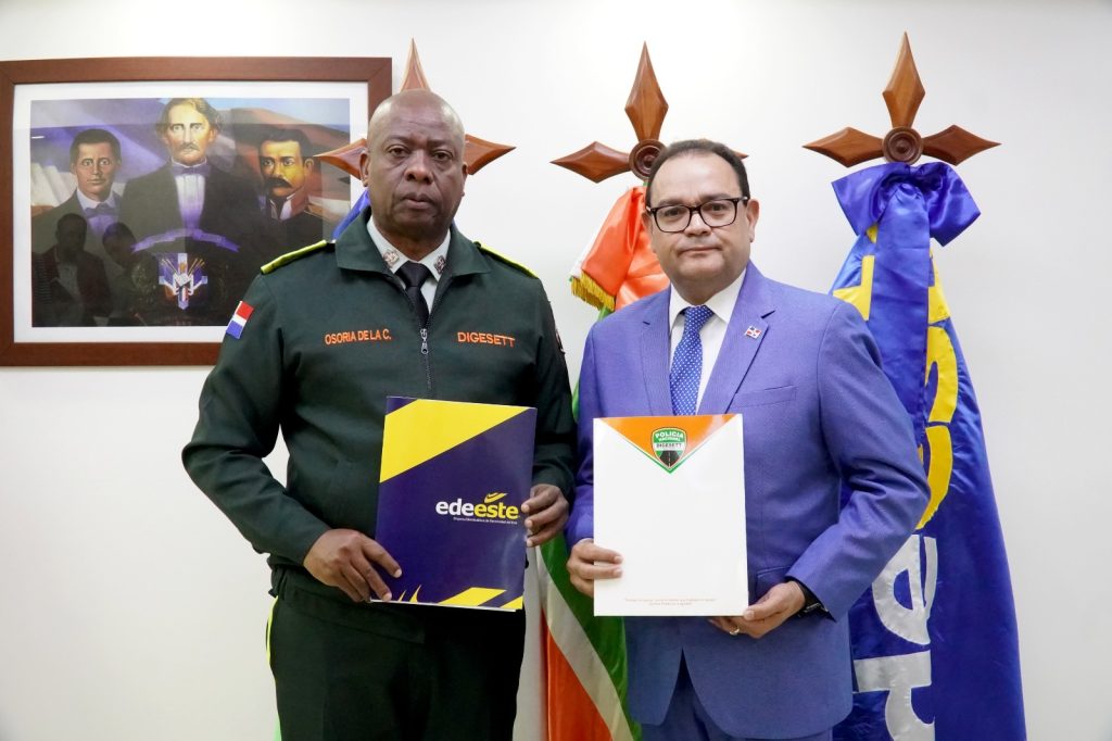 Santo Domingo. La Dirección General de Seguridad de Tránsito y Transporte Terrestre (DIGESETT), representada por el general Francisco Osoria De La Cruz, P.N., y la Empresa Distribuidora de Electricidad del Este (EDEESTE), encabezada por el ingeniero Manuel Mejía Naut, han sellado un acuerdo de colaboración interinstitucional con el objetivo de mejorar la seguridad en las vías.