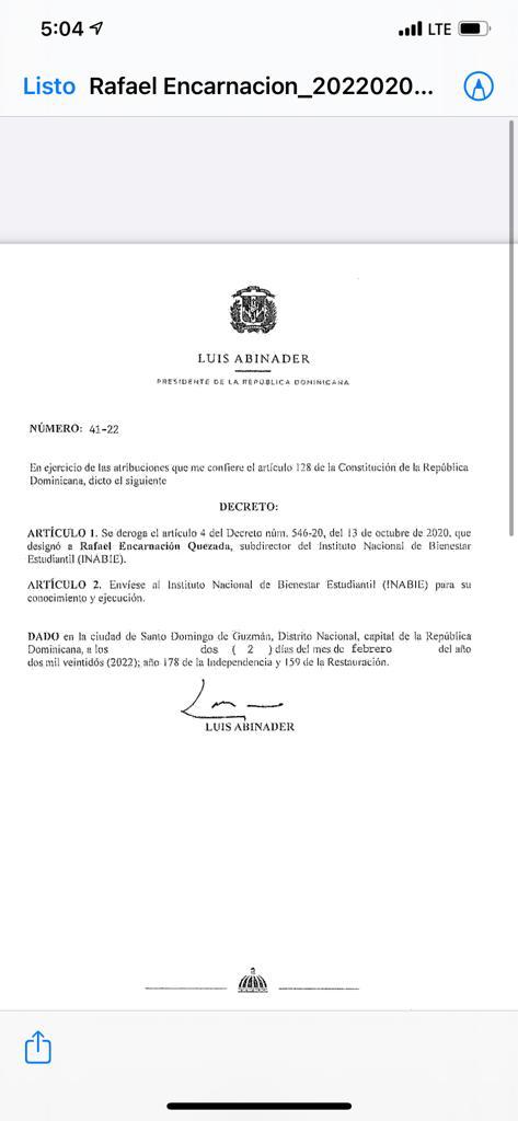 El Ex-Subdirector del INABIE Rafelín Encarnación fue el unico miembro del Comité de Compras que se negó a firmar las licitaciones y abjudicaciones durante la pasada y cuestionada gestión del anterior Director Cecilio Rodríguez, por lo que ha sorprendido la derogación de su decreto la semana pasada por el Presidente Luís Abinader.