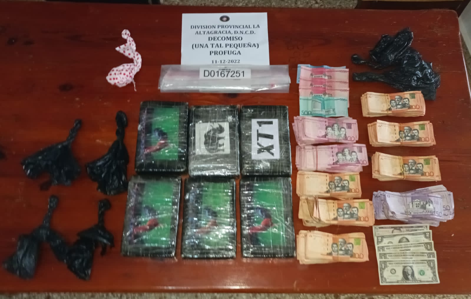 Santo Domingo.- Oficiales de la Dirección Nacional de Control de Drogas (DNCD) y miembros del Ministerio Público, persiguen en la provincia la Altagracia, a una mujer conocida como la Pequeña, quien es vinculada a una red de microtráfico, a la que ocuparon seis paquetes de cocaína en el municipio de Higüey.