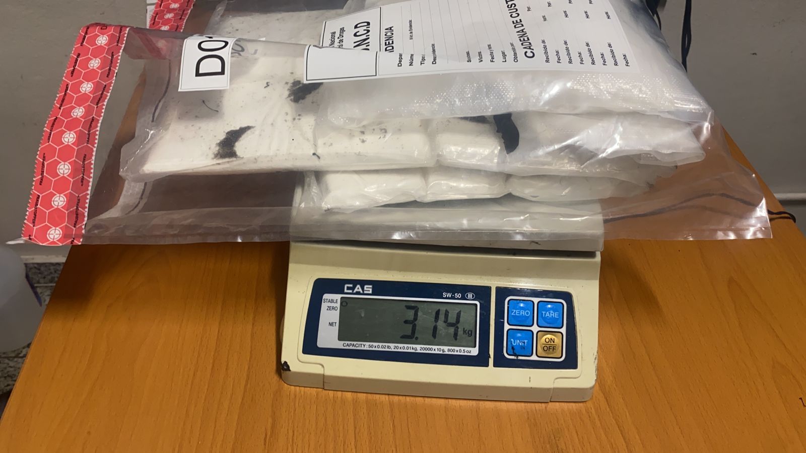 Santo Domingo. – La Dirección Nacional de Control de Drogas (DNCD) con apoyo del Cuerpo Especializado de Seguridad Aeroportuaria y bajo la coordinación del Ministerio Público, ocuparon más de tres kilos presumiblemente cocaína, en el Aeropuerto Internacional de las Américas JFPG.