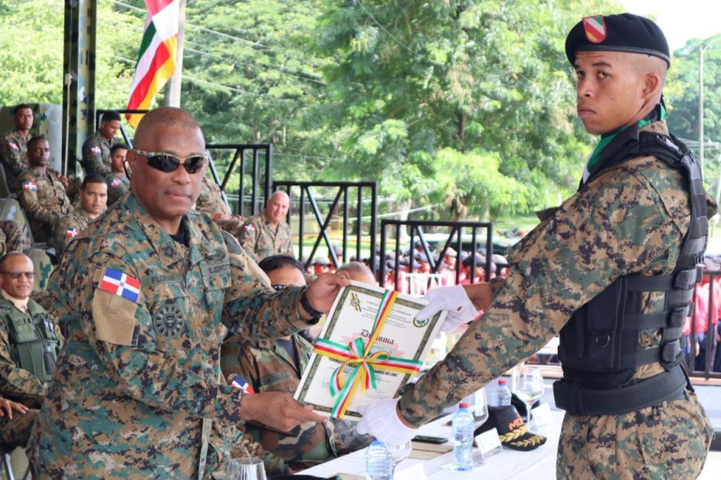 El acto de graduación estuvo encabezado por el Comandante General del Ejército, Mayor General Julio Ernesto Florián Pérez, ERD., quien exhortó a los graduandos a continuar con el proceso de educación continua, valorando el sistema de educación militar del Ejército, que se complementa con un conjunto de valores éticos, morales, cívicos, sociales y culturales, con la finalidad de desarrollar habilidades, capacidades, destrezas y aptitudes en cada uno de los soldados para el cumplimiento de la sagrada misión que descansa sobre los hombres de todo hombre y mujer de informe de ser los garantes de la soberanía e independencia de la República.