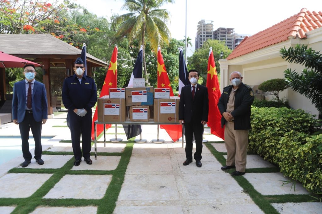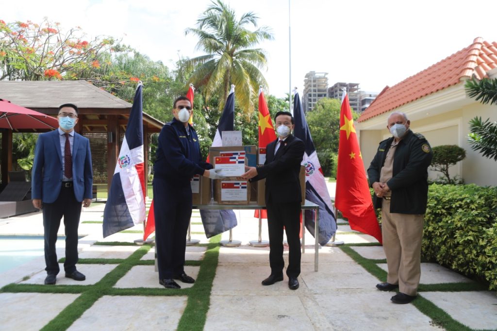 SANTO DOMINGO, RD.– La embajada de China en República Dominicana, a través de su embajador Su Excelencia Zhang Run, donó un lote de mascarillas quirúrgicas, alchohol desinfectante, guantes desechables y termómetros infrarrojos al Ministerio de Defensa, los cuales fueron recibidos por el Viceministro de Defensa para Asuntos Aéreos y Espaciales May. Gral. Pil. Luis Napoleón Payán Díaz, FARD., y el Director del Hospital Central de las Fuerzas Armadas Coronel médico Agustin Rubén Iglesias Melo, ERD.
