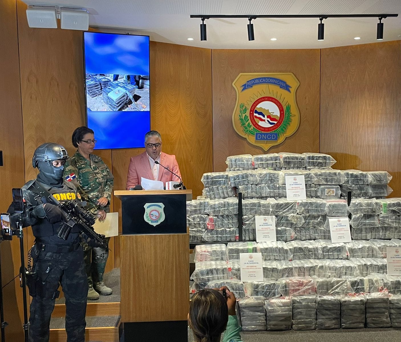 La DNCD resalta el firme apoyo de las Fuerzas Armadas (Armada, Fuerza Aérea, Ejército), Procuraduría y agencias de Inteligencia del Estado, cooperación que ha permitido que solo en este mes de abril se hayan confiscado 3.6 toneladas de drogas.