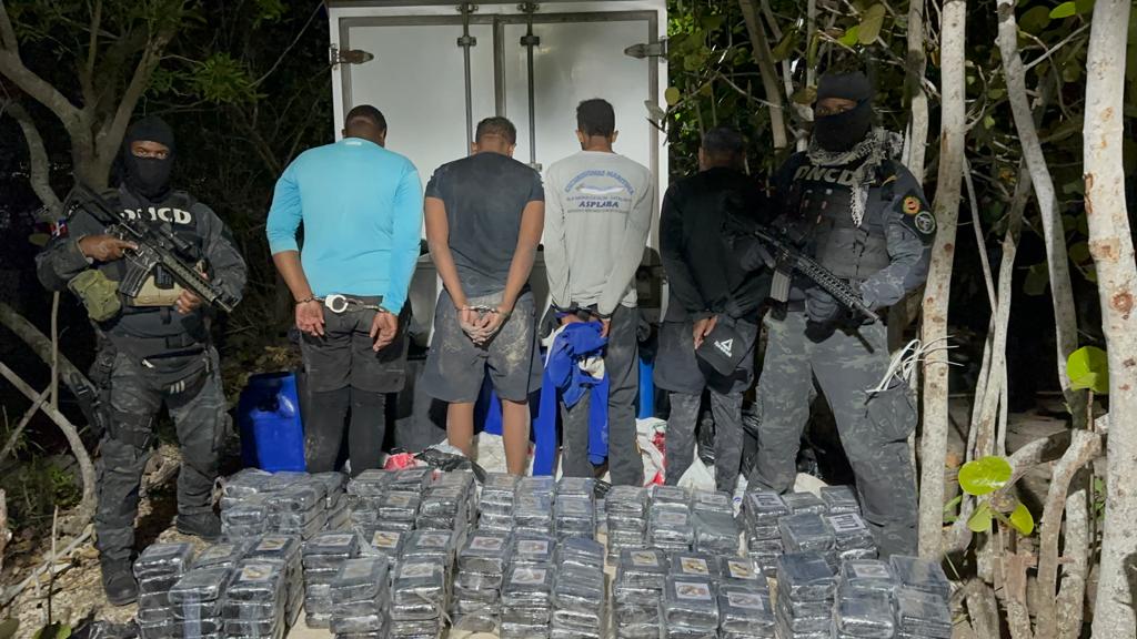 En la operación combinada, desplegada a varias millas náuticas al sureste de Isla Saona, de la referida provincia, fueron apresados tres dominicanos y un venezolano, quienes fueron entregados a las autoridades judiciales de la Altagracia, para conocerles medidas de coerción en las próximas horas.