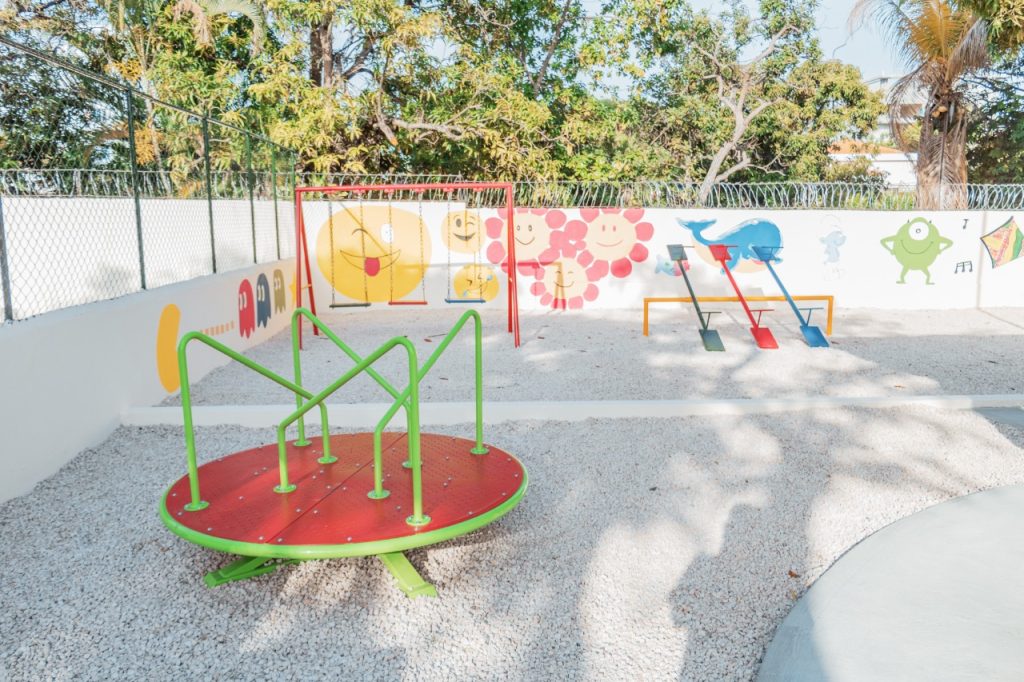 Además, se incorporó un área infantil que contempla juegos y un mural para los niños.